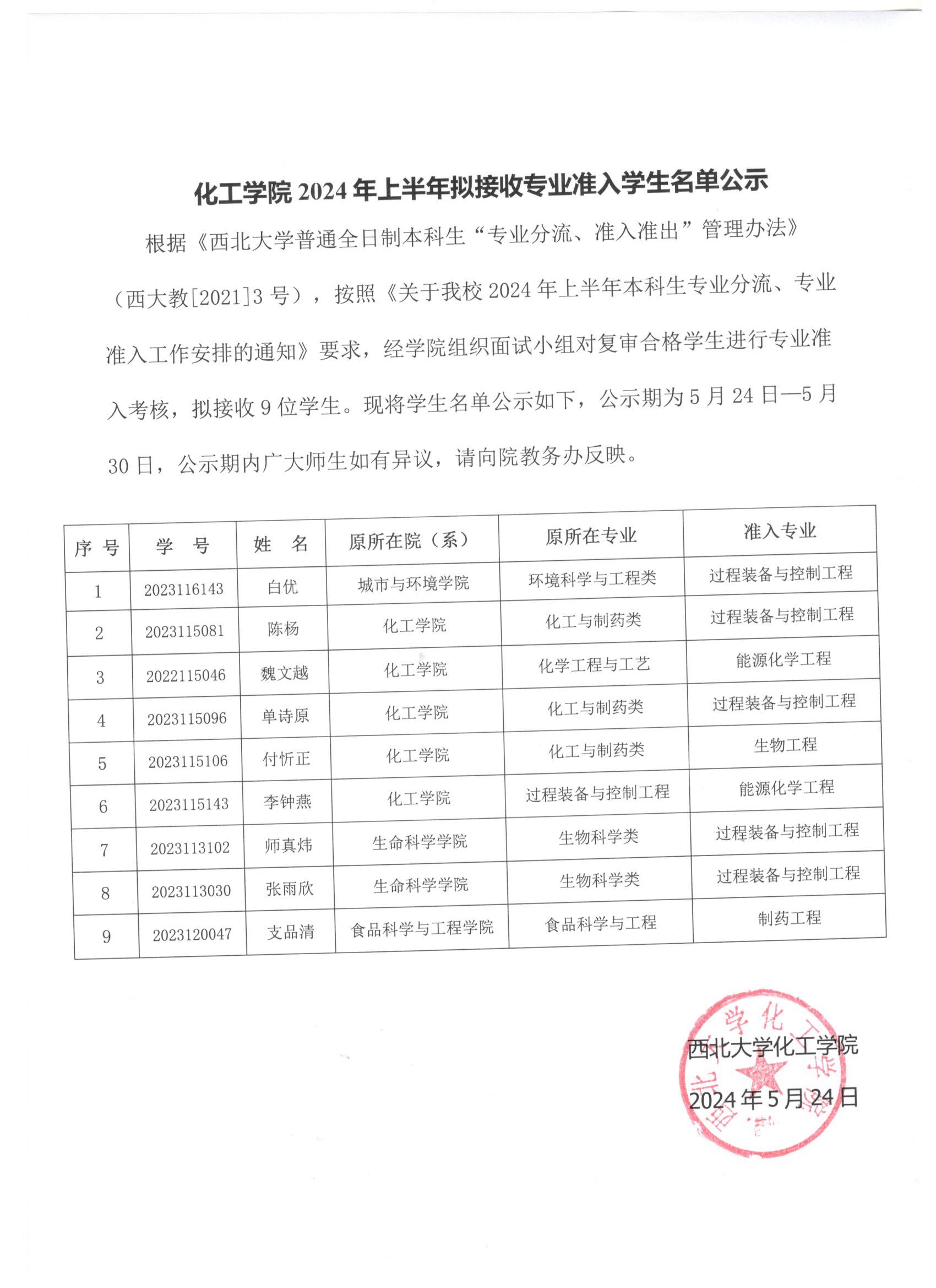 350vip浦京集团官方授权2024年上半年拟接收专业准入学生名单公示