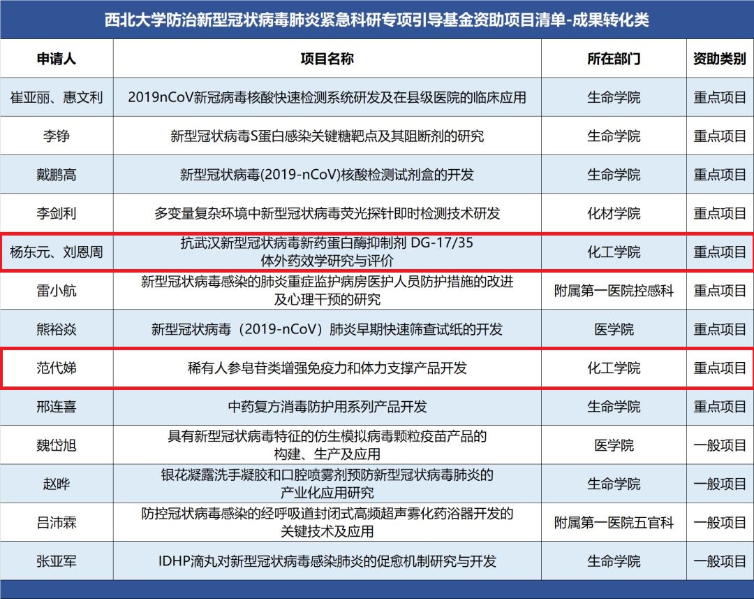 疫情期间,350vip浦京集团官方授权相关专业科研骨干坚持停工不停研,围绕疫情积极开展科学研究,为抗击疫情贡献智慧。范代娣老师的“稀有人参皂苷类增强免疫力和体力支撑产品开发”项目、刘恩周老师的“抗武汉新型冠状病毒新药蛋白酶抑制剂DG-17/35体外药效学研究与评价”项目、刘庆超老师的“芳基二酮酸Des化合物设计、合成及对新型冠状病毒的抑制活性研究”项目分别被立为“350vip浦京集团官方授权防治新型冠状病毒肺炎紧急科研专项引导基金资助项目”的重点科研项目。
