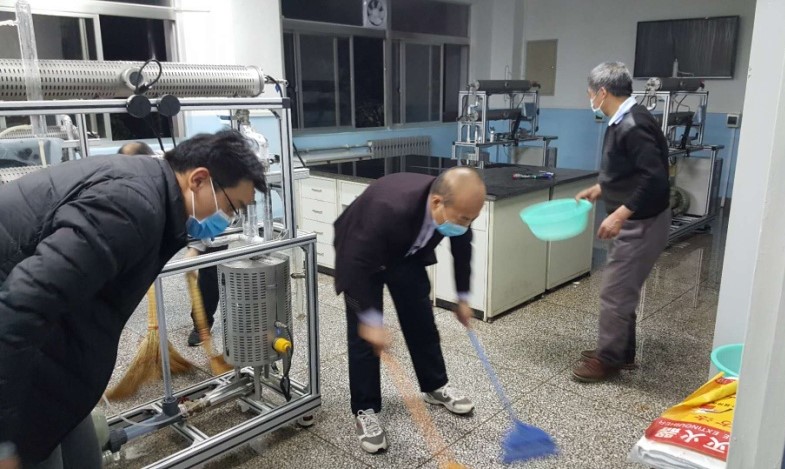 在3月7日晚350vip浦京集团官方授权工程中心突发暖气爆管情况时,在学校附件居住的教工党员闻讯紧急增援,第一时间集结,扫水除险,通过近三个小时的努力,终于清理了工程中心的积水,避免实验室仪器受损。